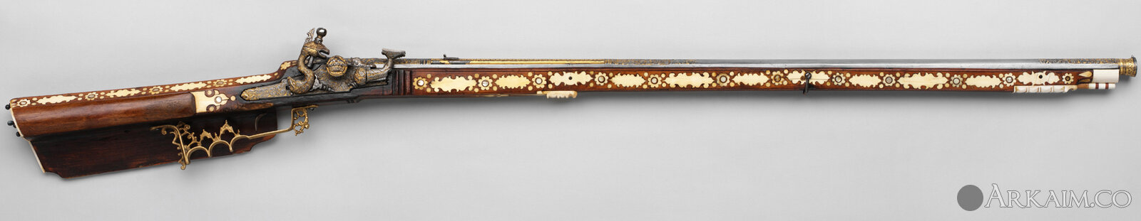 Нарезная пищаль с ударно-кремневым замком, изготовленная в Оружейной палате в 60-х годах XVII века. Оружейная палата, Москва