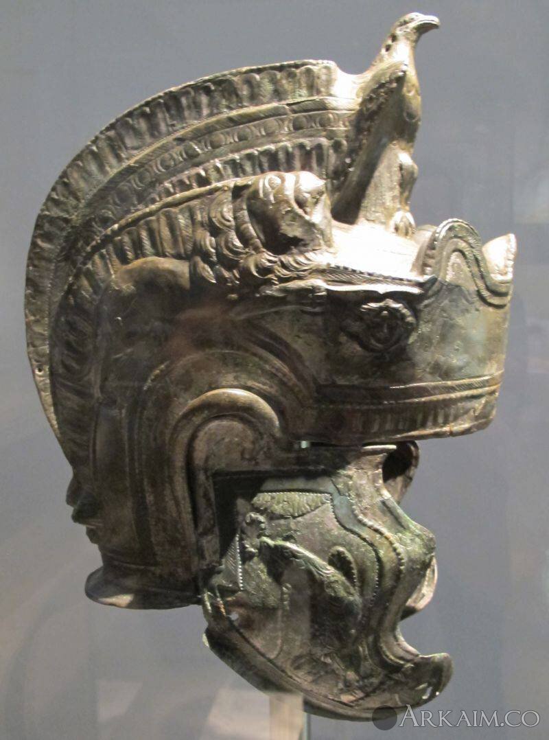 1454044825 20. pyshnyy I otkrovenno bezvkusnyy shlem rimskogo vsadnika Iz luzhenoy bronzy. taylenhofen. okolo 174 G. n.e. gosudarstvennaya kollekciya doistoricheskih drevnostey. myunhen