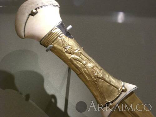 Кинжал и ножны из золота, слоновой кости и серебра из Библа. Бейрут национальный музей.