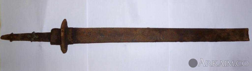 Меч (длина сохранившейся части - 570 мм). Цуба (гарда) листовидной формы с прорезями - отверстиями. Нижнее Приамурье (фото 1)
