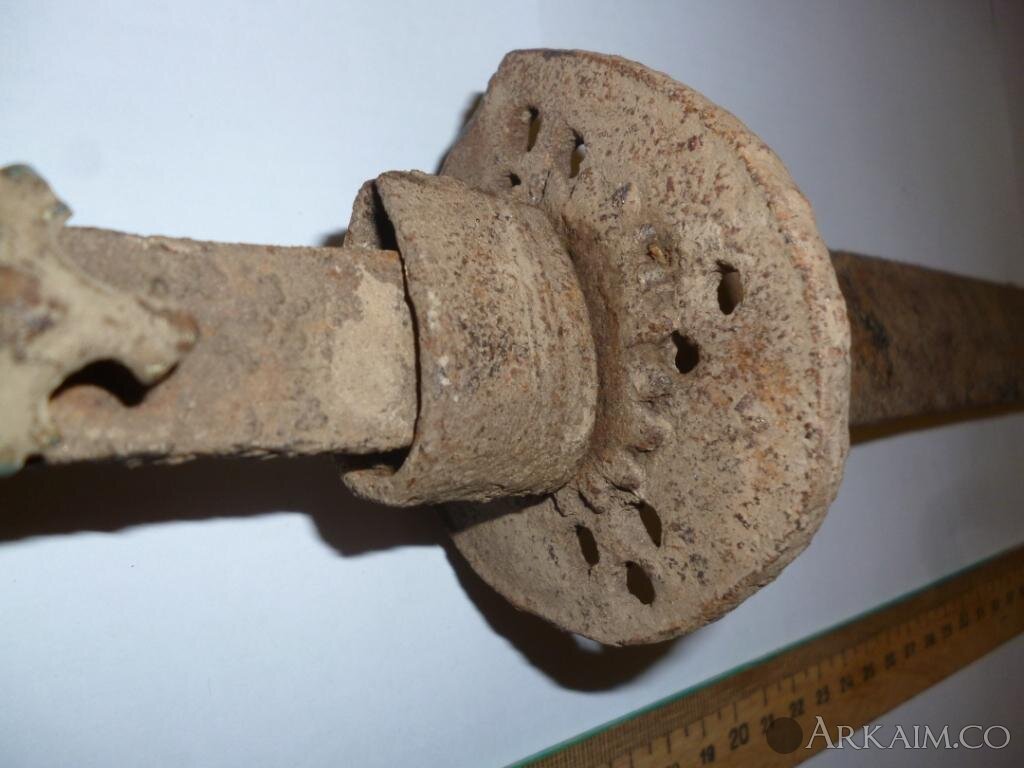 Меч (длина сохранившейся части - 570 мм). Цуба (гарда) листовидной формы с прорезями - отверстиями. Нижнее Приамурье (фото 5)