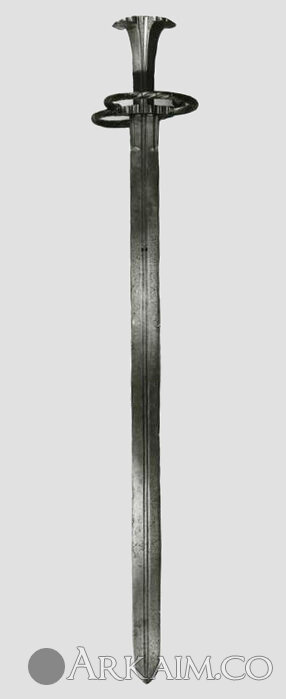 Ландскнехтский меч, или кацбальгер. Время изготовления: 1501/1530 г. Место изготовления: Германия, Северная Италия. Материалы: железо, рог, латунь, сталь. Размеры: общая длина 91 см, длина клинка 77,5 см, ширина клинка 3,9 см. Вес: 1300 г. Немецкий исторический музей, Берлин