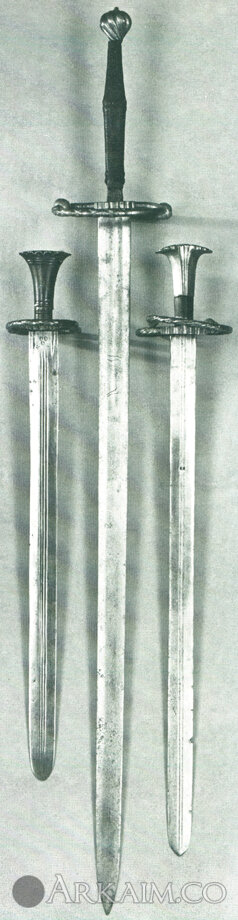 Два кацбальгера и полуторный меч (в центре). Немецкий исторический музей, Берлин, Германия