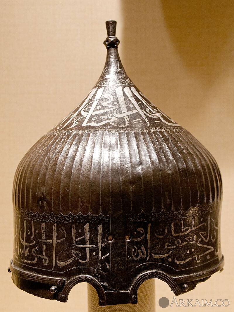 Персидский тюрбанный шлем, инкрустированный серебром. Метрополитен-музей, Нью-Йорк
