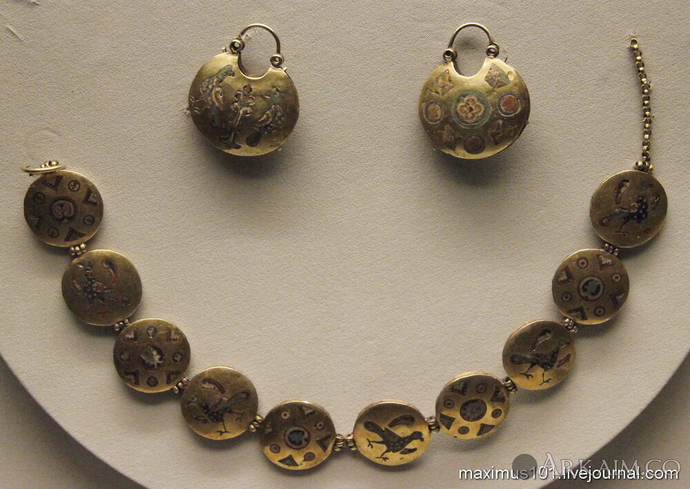 Клад, найденный близ Десятинной церкви в Киеве, 12 в. Золото, перегородчатая эмаль.