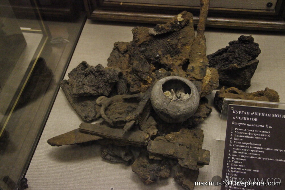 Фрагменты спекшегося оружия и горшок с кальцинированными (сожженными) костями. Курган Черная могила.