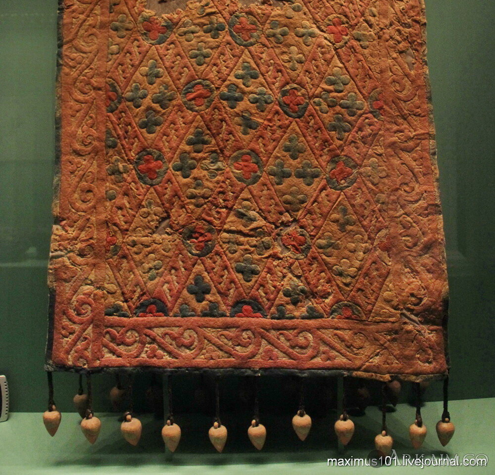 <p><span style="color: rgb(113, 113, 113); font-family: Helvetica, Arial, sans-serif; font-size: 13px;">Конский чепрак, войлок. Пятый пазырыкский курган, IV в. до н.э.</span></p>