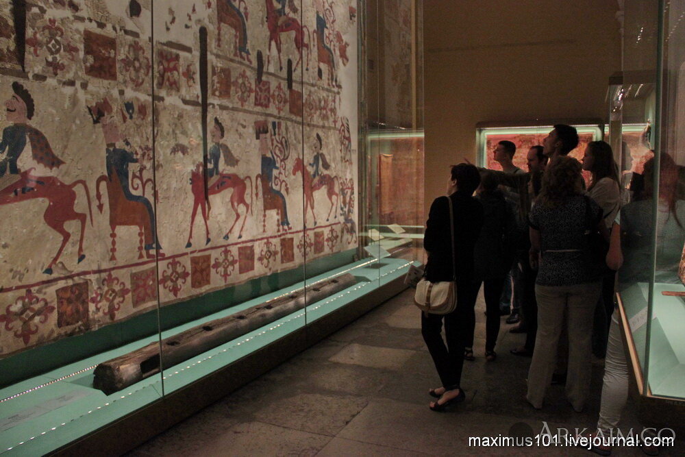 <p><span style="color: rgb(113, 113, 113); font-family: Helvetica, Arial, sans-serif; font-size: 13px;">Войлочный ковер и туристы. Пятый пазырыкский курган, IV в. до н.э.</span></p>