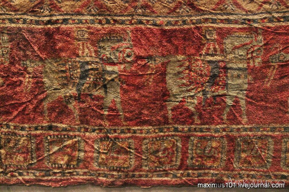 <p><span style="color: rgb(113, 113, 113); font-family: Helvetica, Arial, sans-serif; font-size: 13px;">Фрагменты знаменитого Пазырыкского ковра, V-IV века до н.э. Возможное происхождение ковра - Передняя Азия, скорее всего Мидия. Пятый пазырыкский курган, IV в. до н.э.</span></p>