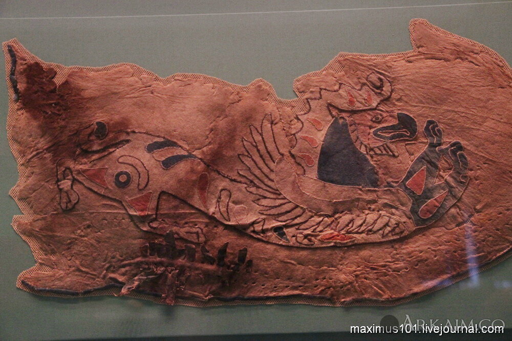 <p><span style="color: rgb(113, 113, 113); font-family: Helvetica, Arial, sans-serif; font-size: 13px;">Фрагмент седельный покрышки. Изображение полулежащего орлиноголового грифона. Войлок. Могильник Пазырык, курган 2, V-IV вв. до н.э.</span></p>