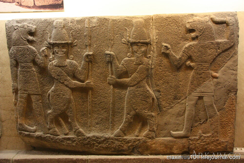 Полулюди-полубыки (кусарикку) и полулюди-полульвы (угаллу), 950-850 гг. до н.э. Каркемиш.