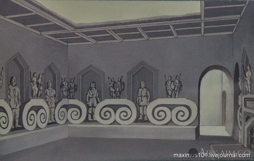 Зал воинов дворца Топрак-кала, Хорезм, III в. Реконструкция.