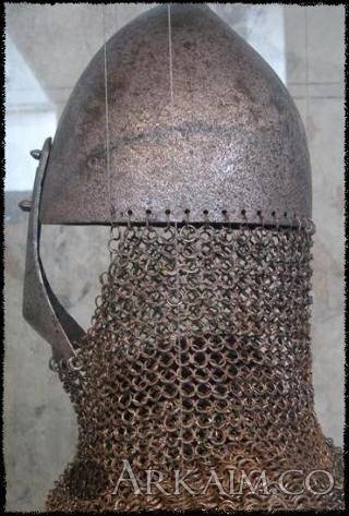Шлем с забралом-наносником и бармицей. Музей Цюриха
