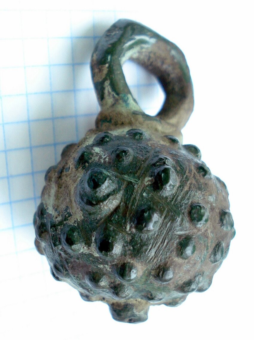 Кистень шаровидный с горошковидными выпуклостями, тип 2А по Кирпичникову, 12-13 вв.