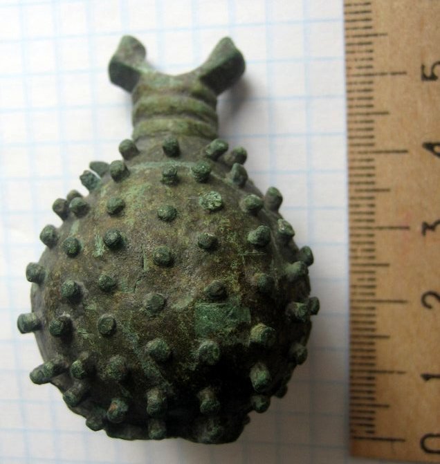 Кистень шаровидный с горошковидными выпуклостями, тип 2А по Кирпичникову, 12-13 вв. Киевская обл.