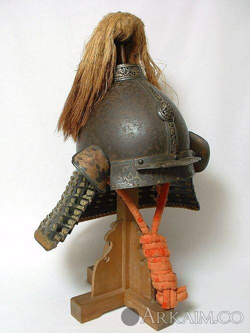 Шлем имеет китайское происхождение и сильно переделан - появился назатыльник-сикоро,отвороты и шнур японского типа. Скорее всего, это действительно, затрофеенный японцами шлем из монголо-китайско-корейской армии, которая пыталась завоевать Японию в 1287 году.