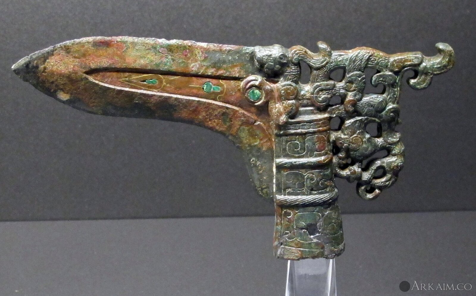 Бронзовый топор-кинжал (по-китайски ge) с инкрустацией нефритом. Древний Китай, 8-5 вв. до н.э. ("Весны и Осени").