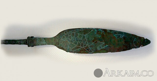 Медный наконечник копья из гробницы правителя Мескаламдуга из города Ур. Лувр, Париж