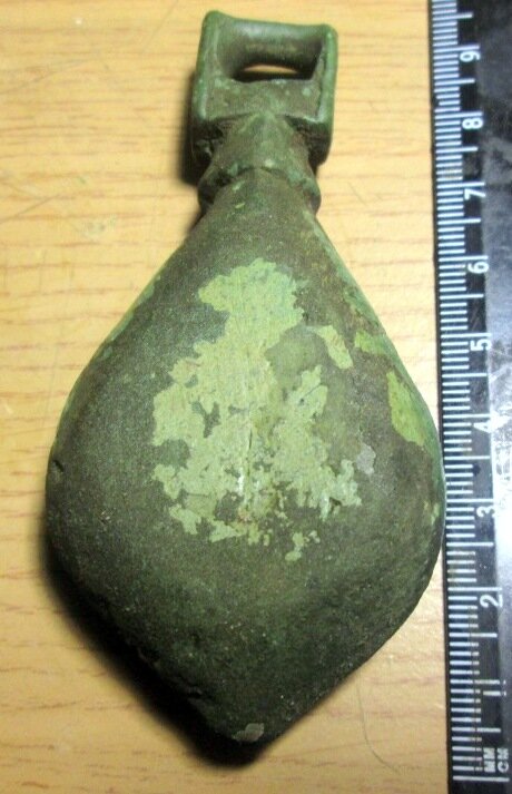 Кистень грушевидный уплощенный с черневым орнаментом, тип 3 по Кирпичникову, вторая половина 12 - 13 вв. Киевская обл.