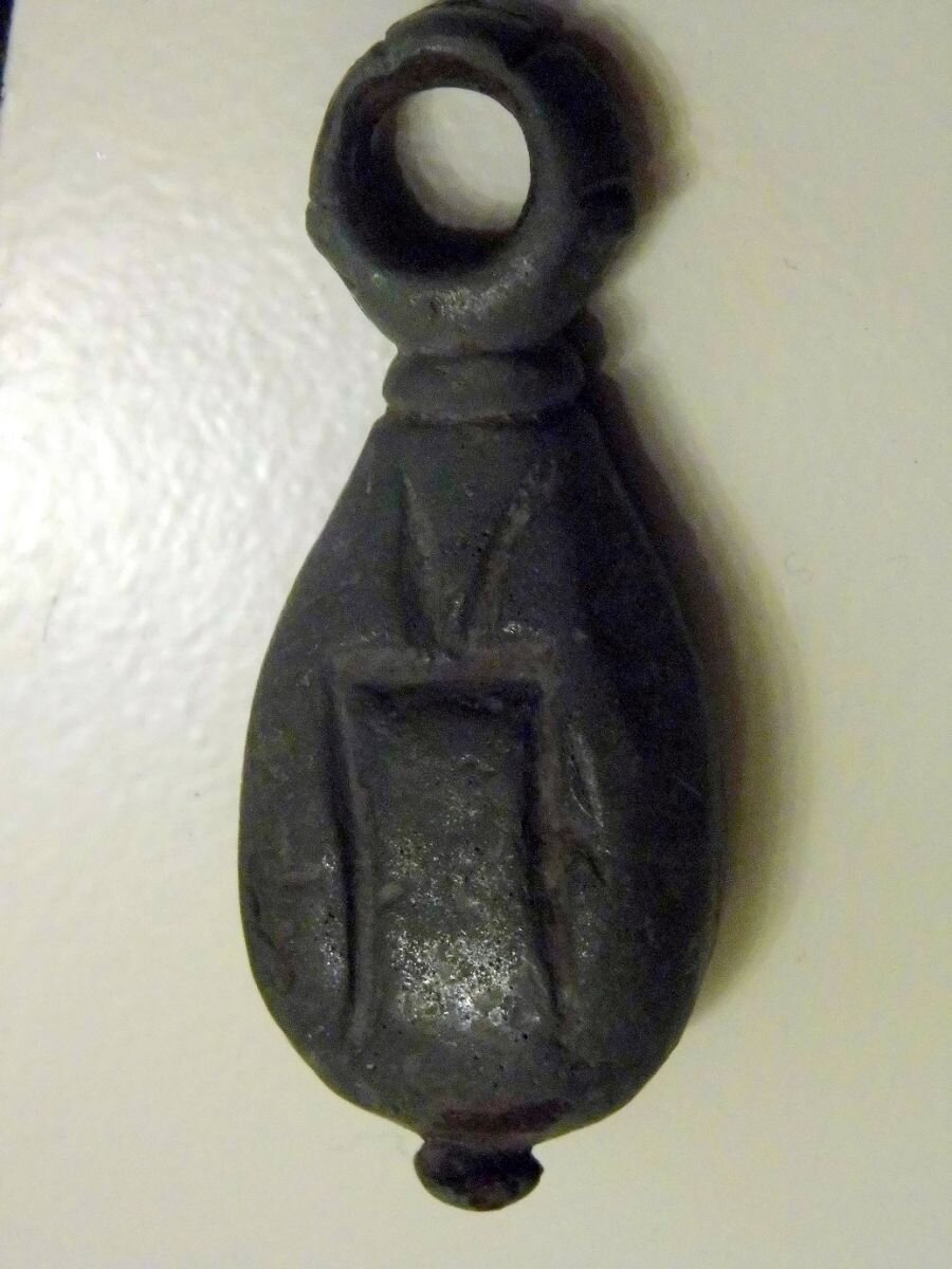Кистень грушевидный уплощенный с граффити-тамгой, тип 3 по Кирпичникову, 70 мм, вторая половина 12 - 13 вв.