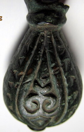 Кистень грушевидный уплощенный с черневым орнаментом, тип 3 по Кирпичникову, 161,37 гр., вторая половина 12 - 13 вв.