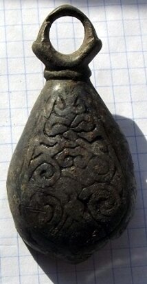 Кистень грушевидный уплощенный с черневым орнаментом, тип 3 по Кирпичникову, вторая половина 12 - 13 вв. Полтавская обл.