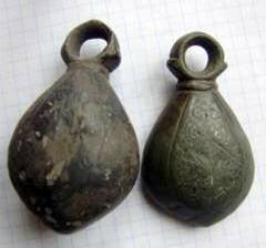 Кистень грушевидный уплощенный с черневым орнаментом, тип 3 по Кирпичникову, вторая половина 12 - 13 вв. Житомирская обл.
