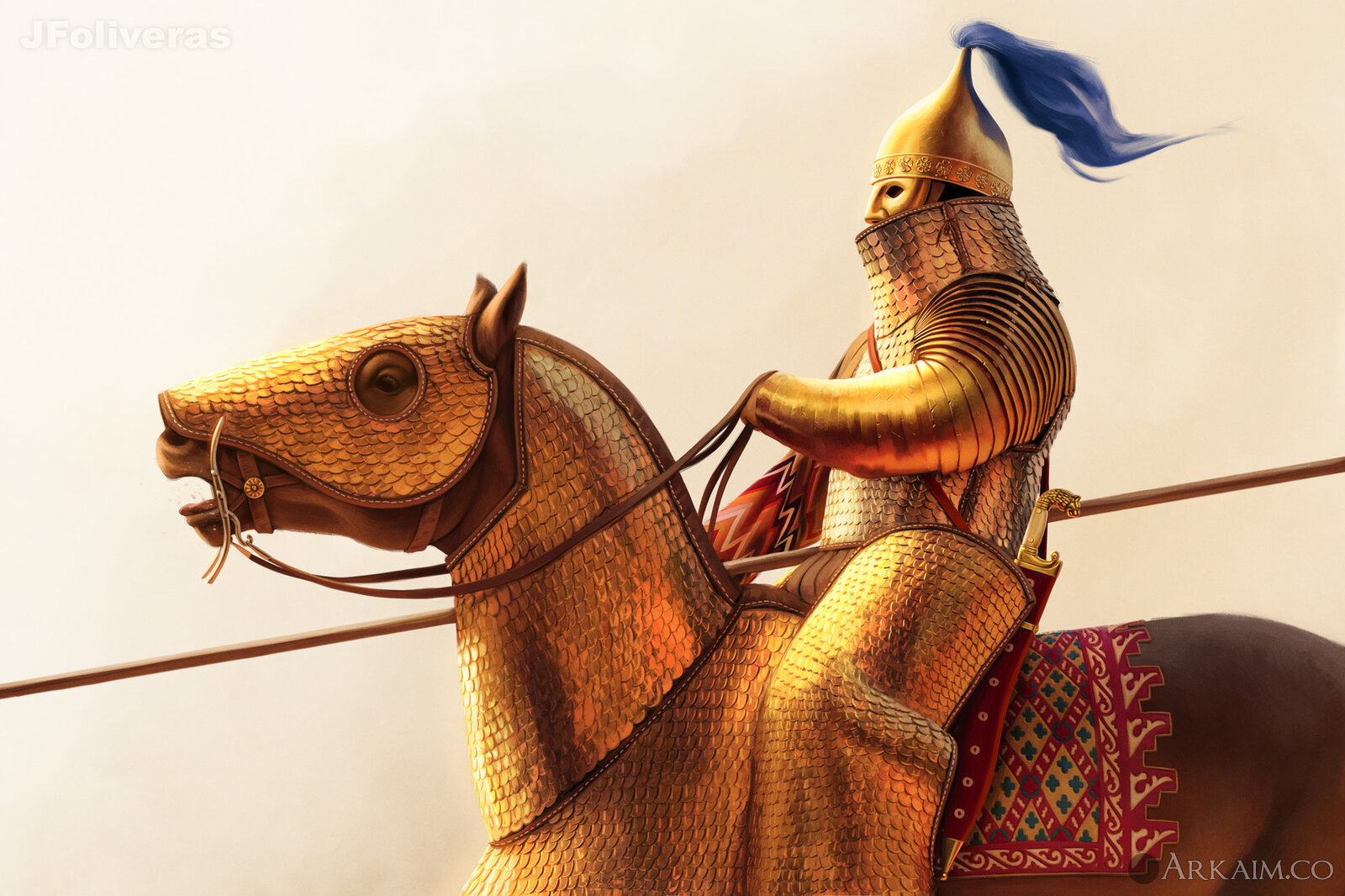 Катафрактарии были тяжелой кавалерией древнего мира, предшественниками средневековых рыцарей. Они отличались от других подразделений ударной кавалерии тем, что и наездник, и лошадь носили доспехи. Самые ранние из известных катафрактариев могли появиться среди древних иранских кочевников Центральной Азии, скифов или саков. Персы использовали катафрактарии еще во времена Ахеменидов. Царь Ксеркс включил в армию катафрактариев, которые он привел в Грецию во время греко-персидских войн. Греки впервые применили катафрактариев в Империи Селевкидов, одном из государств-преемников империи Александра Великого. Римляне также приняли их использование позже, и Восточная Римская (или Византийская) Империя продолжала использовать их в течение Средневековья. Катафрактарии также распространились на Восточную Азию (их использовали тюркские народы и китайцы) и исламский мир.