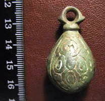 Кистень грушевидный уплощенный с черневым орнаментом, тип 3 по Кирпичникову, вторая половина 12 - 13 вв. Днепропетровская обл.