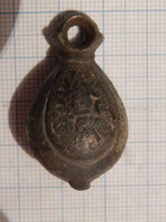 Кистень грушевидный уплощенный с черневым орнаментом, тип 3 по Кирпичникову, вторая половина 12 - 13 вв. Черниговская обл.
