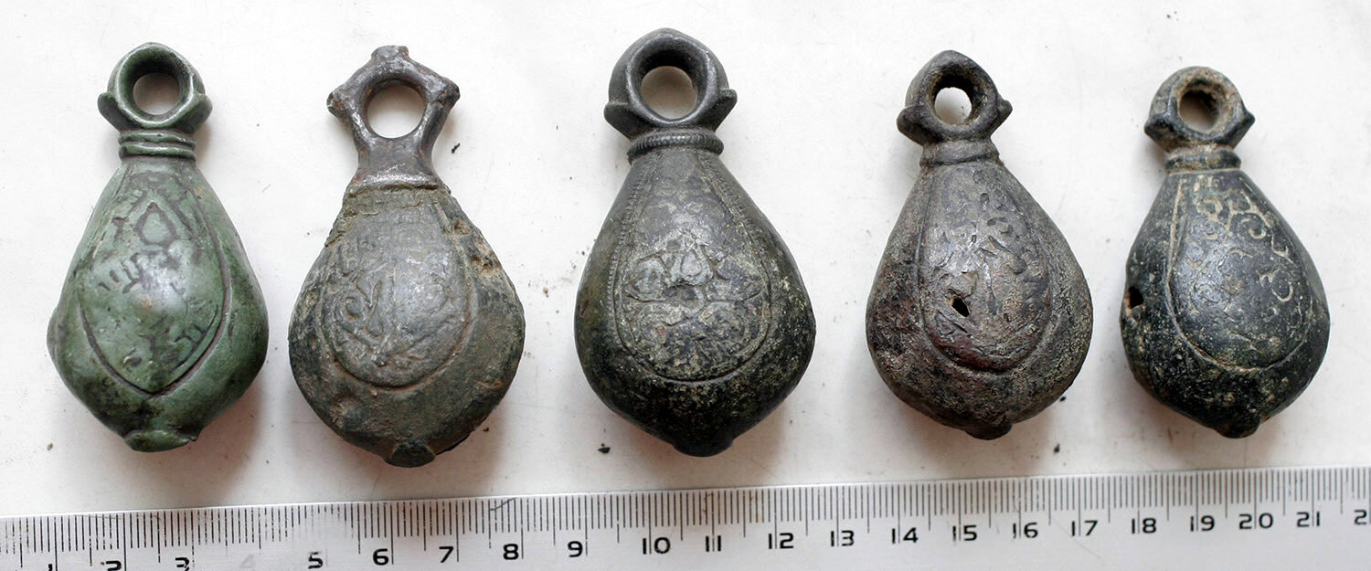 Кистень грушевидный уплощенный с черневым орнаментом, тип 3 по Кирпичникову, вторая половина 12 - 13 вв.