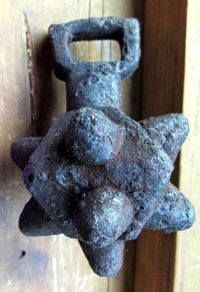 Кистень в виде куба со срезанными углами и напаянными шипами, железо, 4 тип по Кирпичникову, 12 - пп. 13 вв.