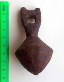 Кистень биконической формы с квадратным ушком, тип 6 по Кирпичникову, 12-13 вв.