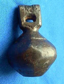 Кистень шаровидный гладкий с узорным перехватом в виде лепестков и квадратным ушком, тип 4 вариант 2 по Колчевому, вторая половина 8 - начало 10 вв. Вес 340,8 гр. Харьковская обл.