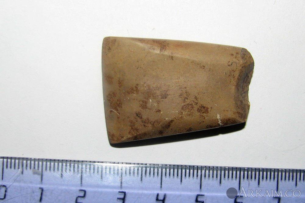 Маленький топорик-тесло с озера Шагара в Рязанской области. Волосовская культура, ок. 2000 л. до н.э.