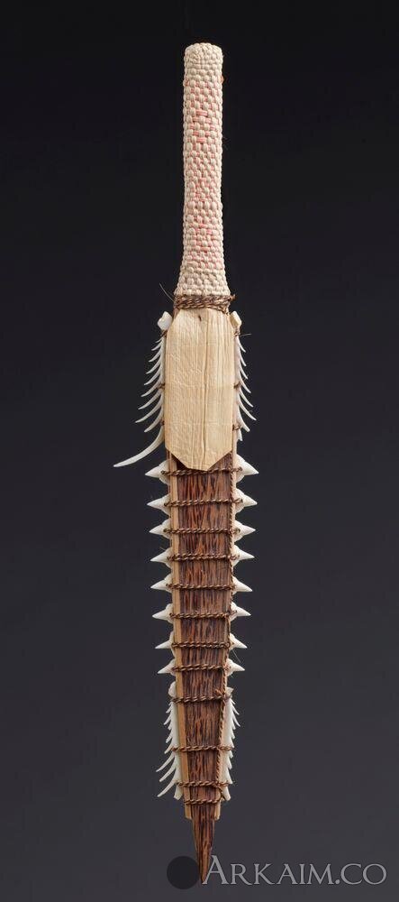 Меч с зубами акулы из маленькой республики Кирибати, Полинезия. Сравнительно новый - 20 век, но тем не менее аутентичный, и вполне возможно, пробовавший крови. Хранится в музее Новой Зеландии.