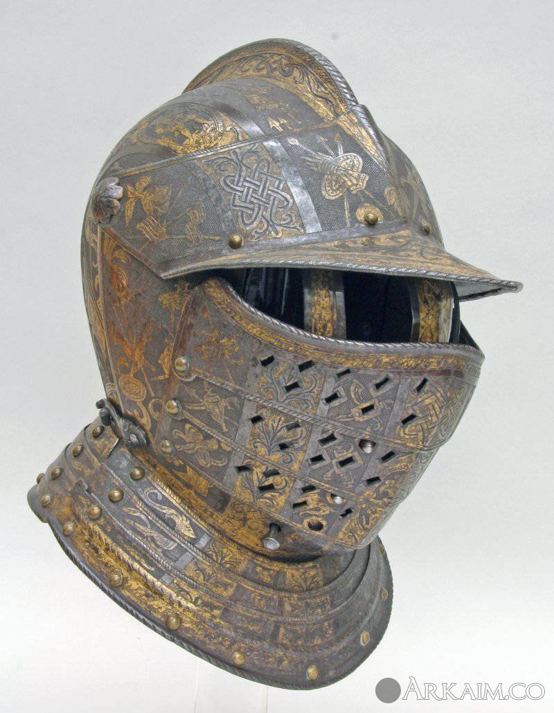 Закрытый шлем с сегментарным забралом. Милан. Вес 2,78 кг. 1590-1595 гг.