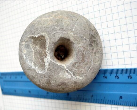Булава каменная с остатками железной рукояти. Северный Кавказ