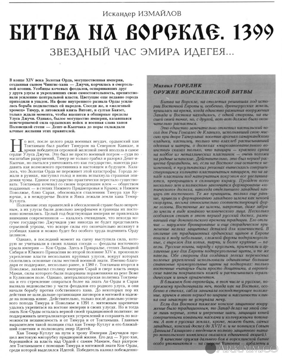 Измайлов И. Битва на Ворскле, 1399. Оружие Ворсклинской битвы.