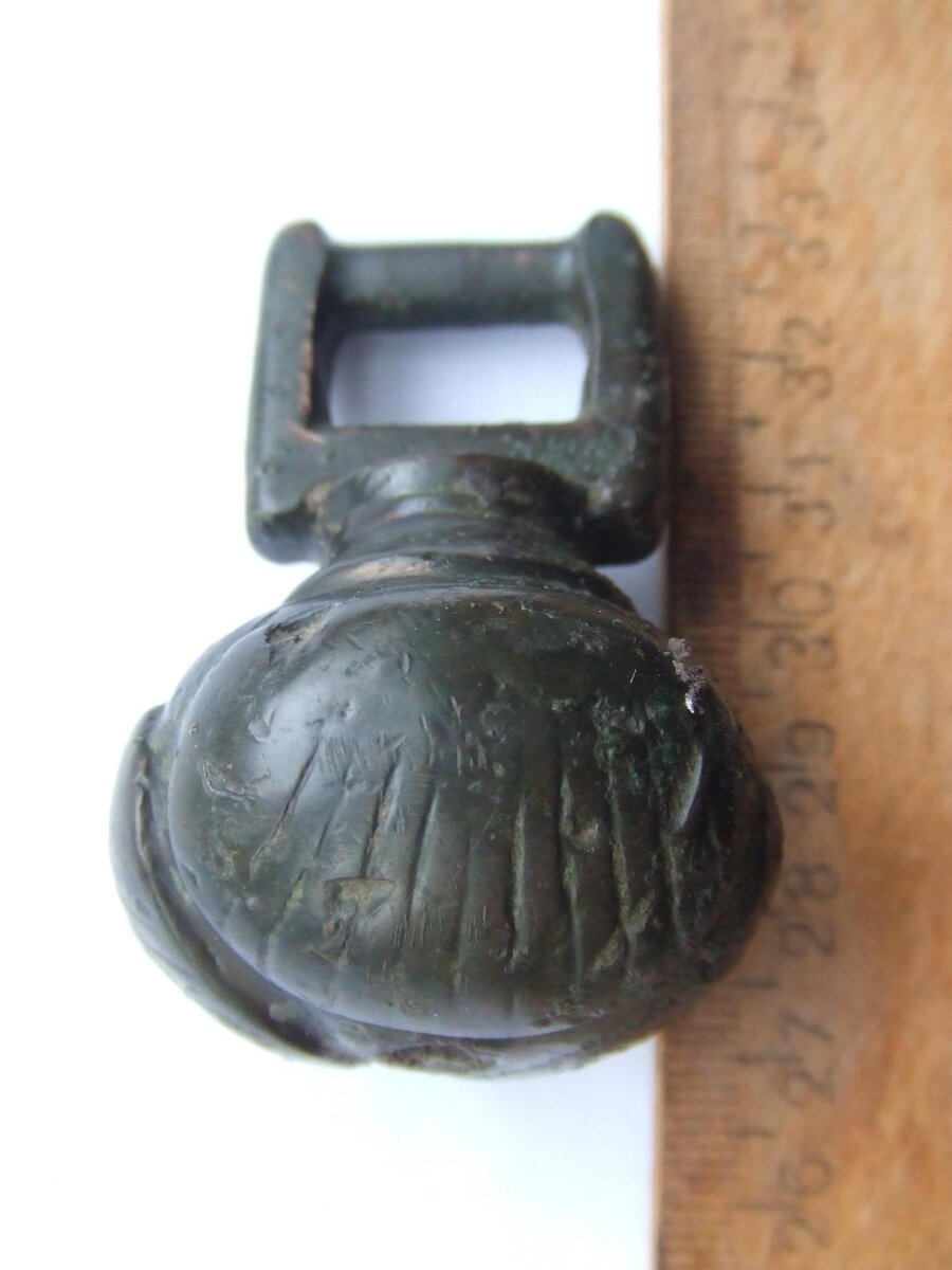 Кистень шаровидный разделенный на три доли имитирующие бутон? с насечками по краю, тип 4 вариант 2 по Колчевому, вторая половина 8 - начало 10 вв. Булгары?