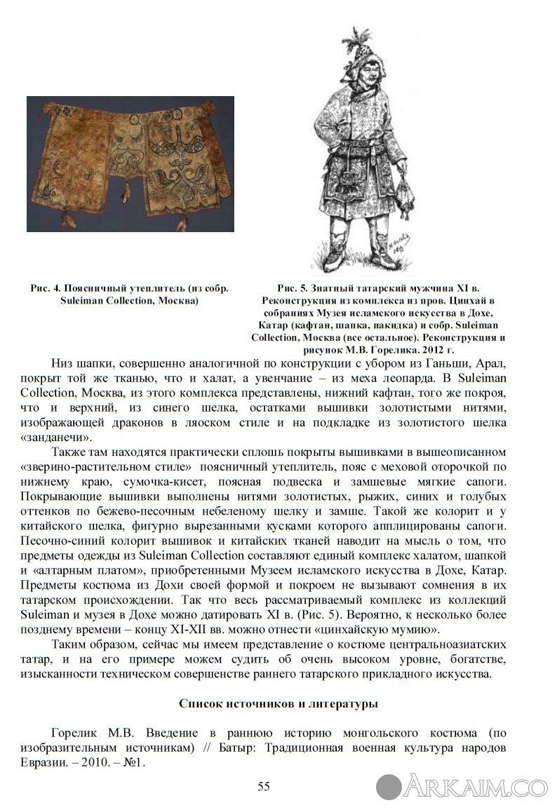 М.В.Горелик. Центральноазиатские татары начала второго тысячелетия (по данным костюма).// Интеграция археологических и этнографических исследований. Т.2. Сборник научных трудов. Иркутск-Омск, 2013. С.51-56