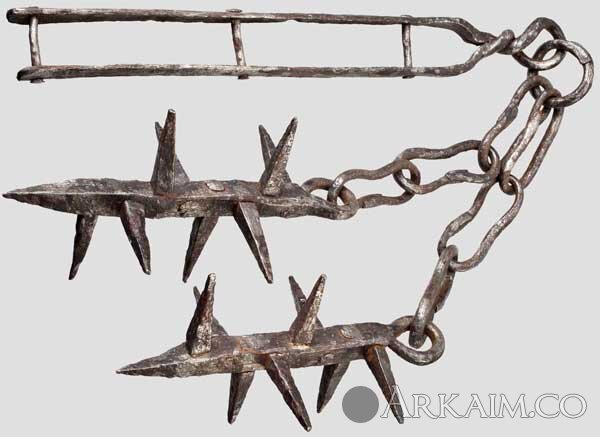«Тройной кистень» и боевой цеп на иллюстрации из трактата Тальхоффера 1459 года.