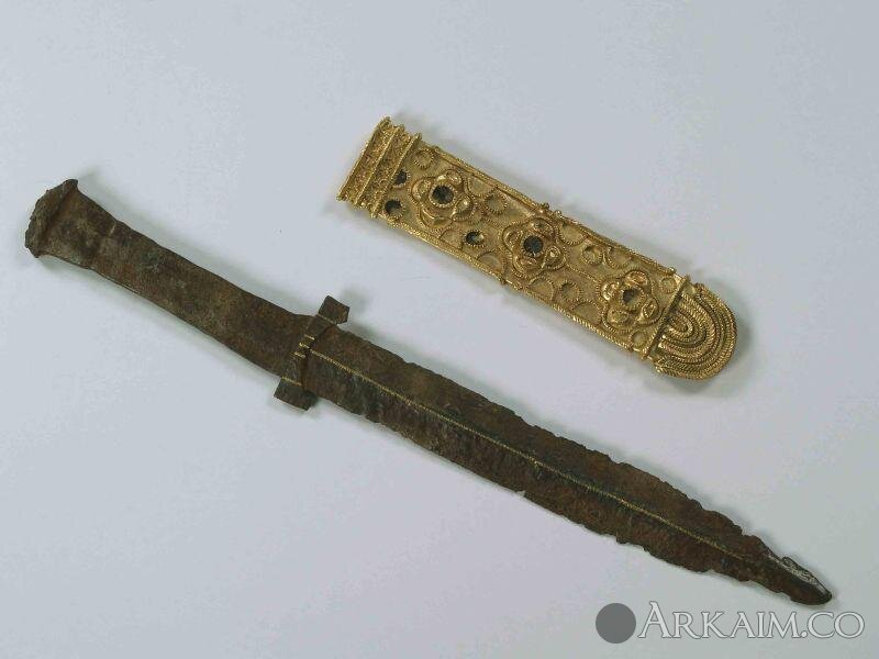 Кинжал и ножны, 7 в. до н.э. Бронза, серебро, золото. Поселок Белоградец, Варна.