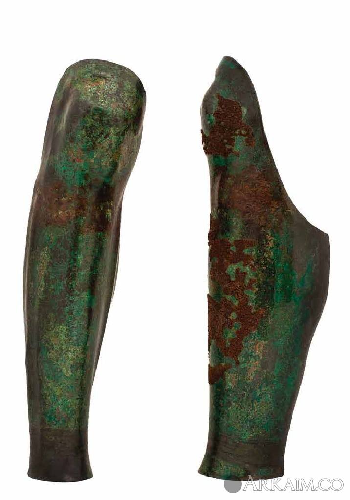 Наголенники, бронза. Датируется серединой IV в. До н. Э. Из села Плетена, Западные Родопы. Национальный исторический музей - София.
