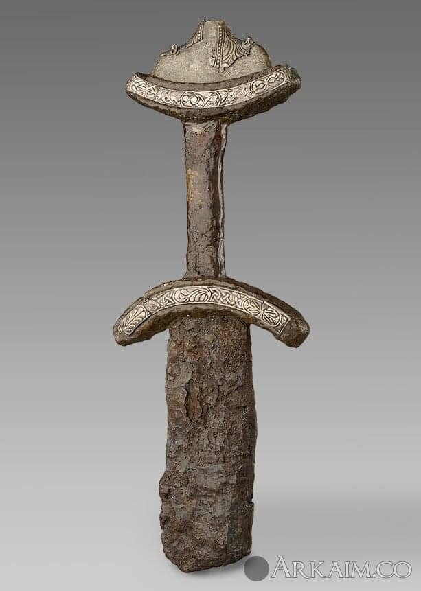 Фрагмент меча и рукоять «меча Абингдон» позднего англосаксонского периода в Британии (850 - 1066 гг.). Изготовлен из железа, черни, серебра и сварен по узору. Обнаружен сэром Джоном Эвансом в округе Абиндгон, вероятно, в Баггс-Милл.