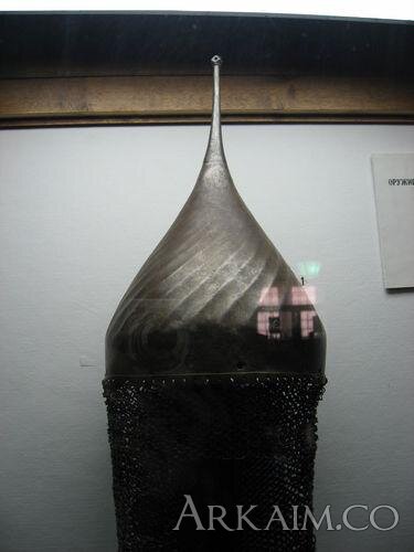 Этот шелом, вероятно, происходит из оружейной палаты Кирилло-Белозерского монастыря. Инвентарный номер в ВИМИАИВиВС — неизвестен. Судя по всему, вместо бармицы, к шелому прикреплен рукав кольчуги. В музее заявлен как XIV-XV вв., хотя XVI век кажется более достоверным для датировки.