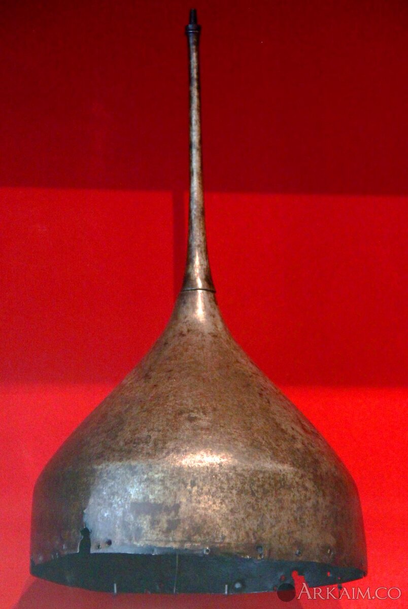 Шелом № ? из Новгородского музея-заповедника. Тулья сфероконическая, низкая, гладкая. Венец широкий. Навершие привертное.