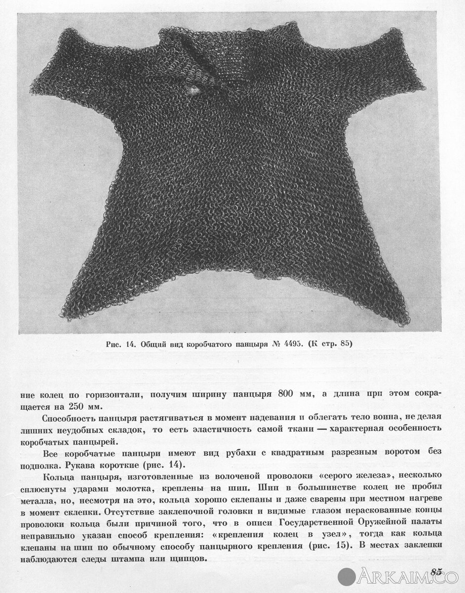 Все коробчатые пансыри имеют вид рубахи с квадратным разрезным воротом без подполка. Рукава короткие (рис. 14).