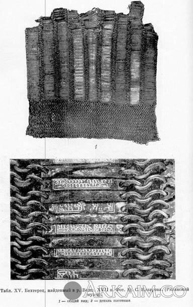 Этот бахтерец был найден на р. Воже и впервые показан в уже ставшей классической работе А.Н. Кирпичникова Военное дело на Руси в XIII-XV вв.