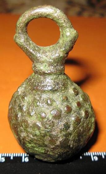Кистень шаровидный с горошковидными выпуклостями, тип 2А по Кирпичникову, 12-13 вв.